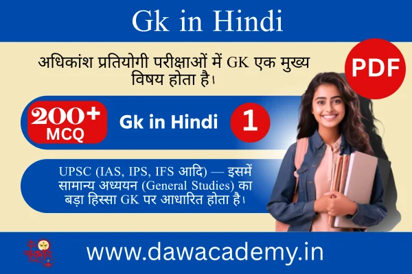 UPSC (IAS, IPS, IFS आदि) – इसमें सामान्य अध्ययन (General Studies) का बड़ा हिस्सा GK पर आधारित होता है।SSC Exams (CGL, CHSL, MTS, GD आदि) – यहाँ सामान्य ज्ञान और करंट अफेयर्स से कई प्रश्न पूछे जाते हैं।Railway Exams (RRB, NTPC, Group D) – सामान्य विज्ञान, भूगोल, इतिहास, और भारत से जुड़ा GK पूछा जाता है।Bank Exams (IBPS, SBI PO/Clerk) – यहाँ भी करंट अफेयर्स और सामान्य जागरूकता का सेक्शन होता है।Defence Exams (NDA, CDS, Airforce, Navy) – इनमें इतिहास, भूगोल, राजनीति और सामान्य ज्ञान के प्रश्न आते हैं।State PSC Exams (जैसे BPSC, MPSC, UPPSC आदि) – राज्य और देश से संबंधित GK बहुत महत्वपूर्ण होता है।Teaching Exams (CTET, TET, KVS, NVS) – इनमें भी सामान्य अध्ययन और करंट अफेयर्स के प्रश्न शामिल होते हैं। gk in hindi question answer pdf